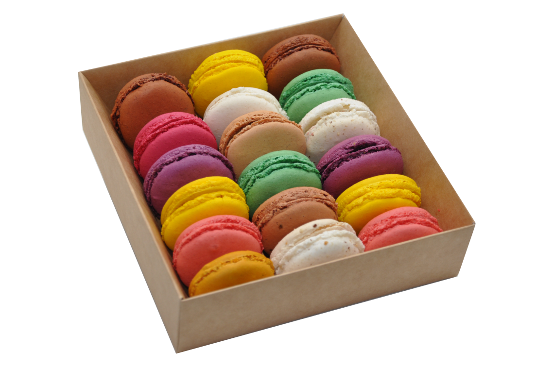 Nos macarons ont une coque croustillante avec un centre moelleux. Ils sont remplis d'une combinaison de délicieuses garnitures. Chaque boîte contient un mélange de saveurs que nous avons en stock.