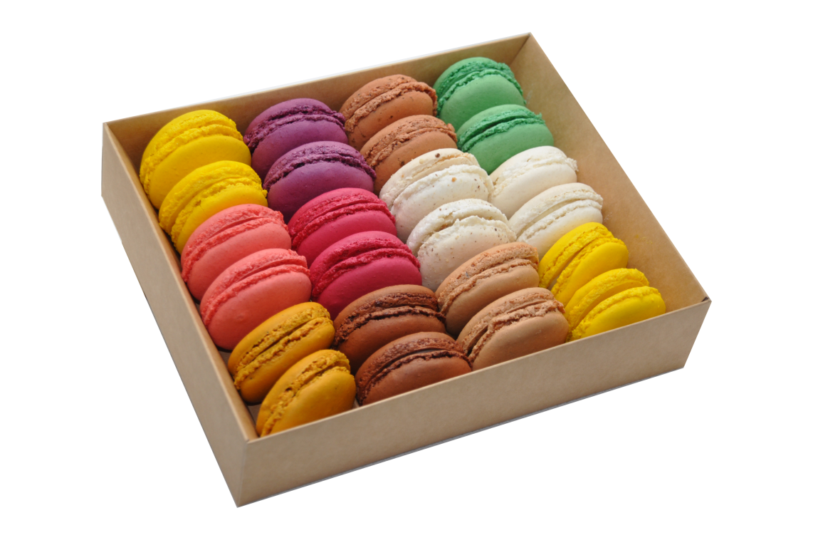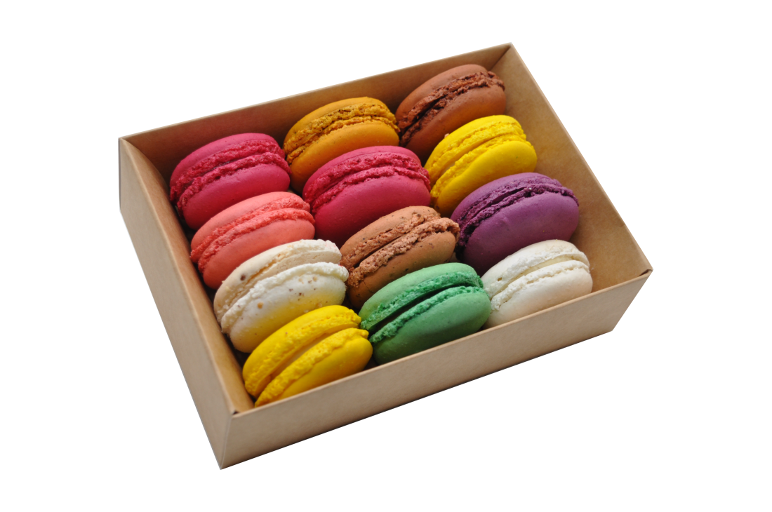 Nos macarons ont une coque croustillante avec un centre moelleux. Ils sont remplis d'une combinaison de délicieuses garnitures. Chaque boîte contient un mélange de saveurs que nous avons en stock.